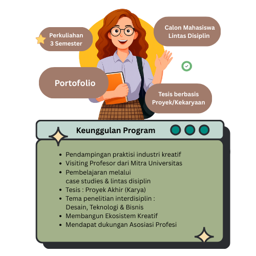 Digital Media Design meluluskan Magister Desain sebagai “MEDIA INNOVATOR” yang kreatif, adaptif, memiliki pemikiran kritis, dan terus belajar untuk mengikuti perkembangan teknologi dan berinovasi. Mereka tidak hanya menciptakan produk yang estetis tetapi juga fungsional, berkelanjutan, dan memberikan nilai tambah yang nyata bagi masyarakat serta memiliki jiwa kepeloporan dan keterlibatan aktif dalam pemberdayaan komunitas dan/atau lingkungan dimana ia berkiprah